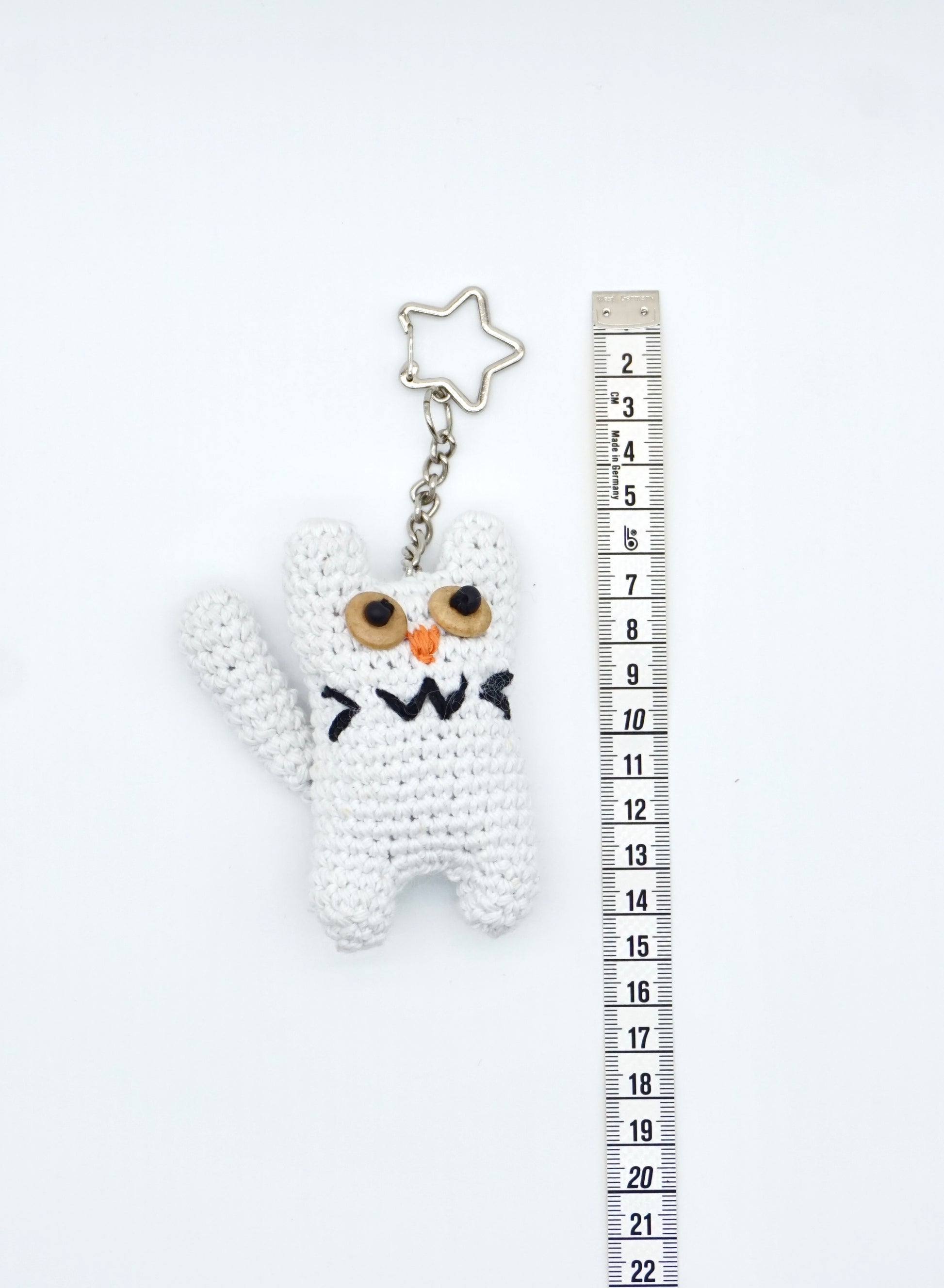 Meet your new favorite tiny companion — the Handmade Crochet White Cat Charm! This irresistibly soft little cat is ready to perk up your bag, brighten your keyring, or simply smile at you from your desk.