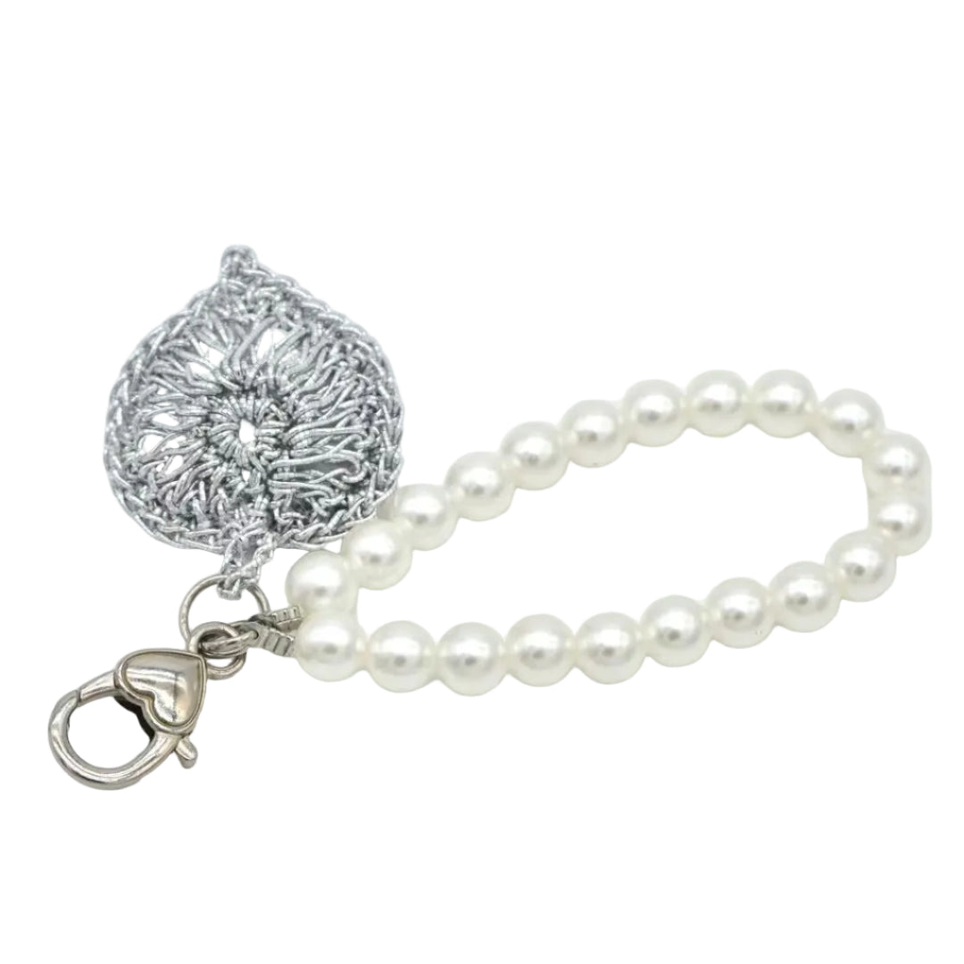 Material: Metallic Lurex Yarn, Faux Pearls, Metal Heart Clasp.