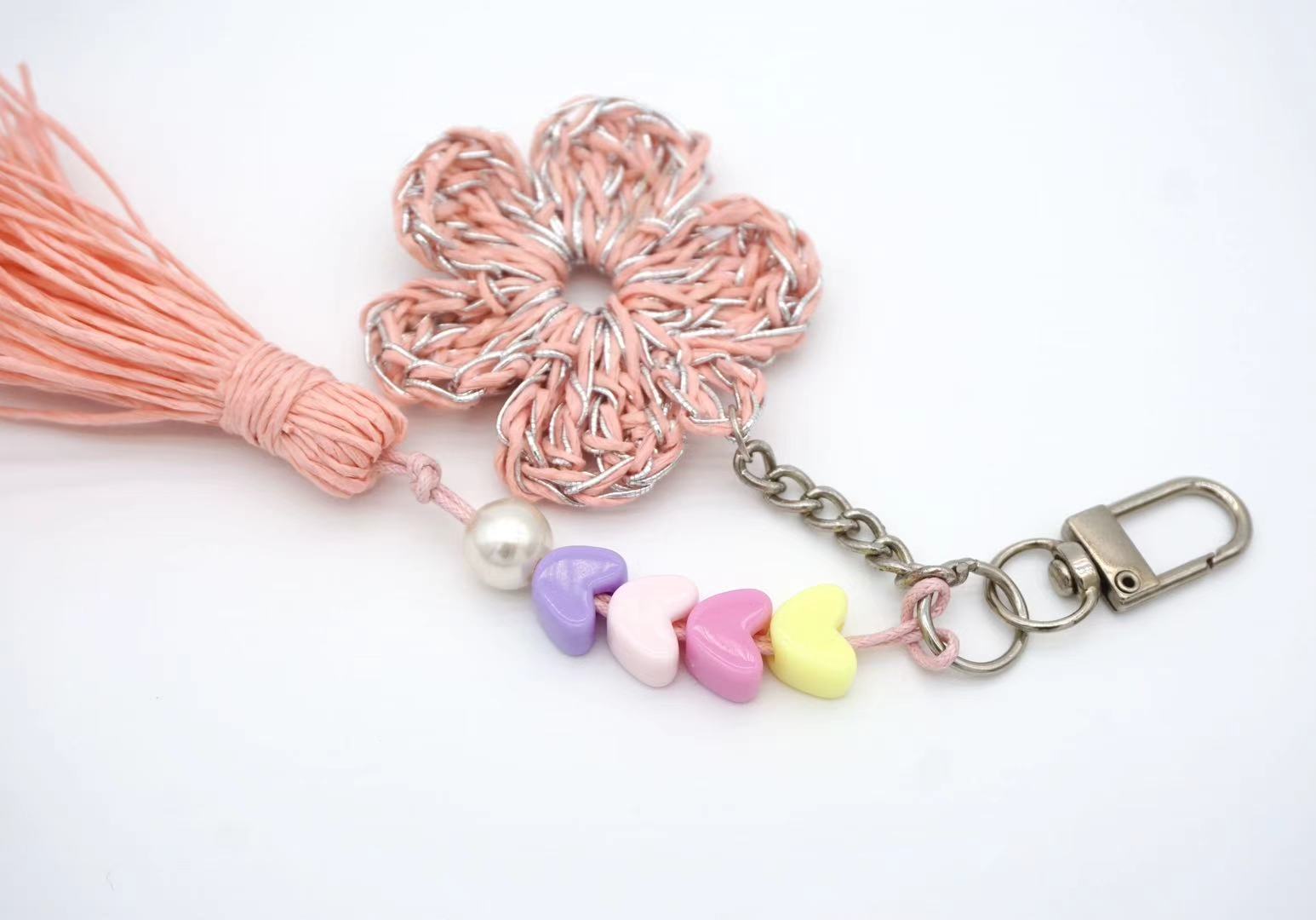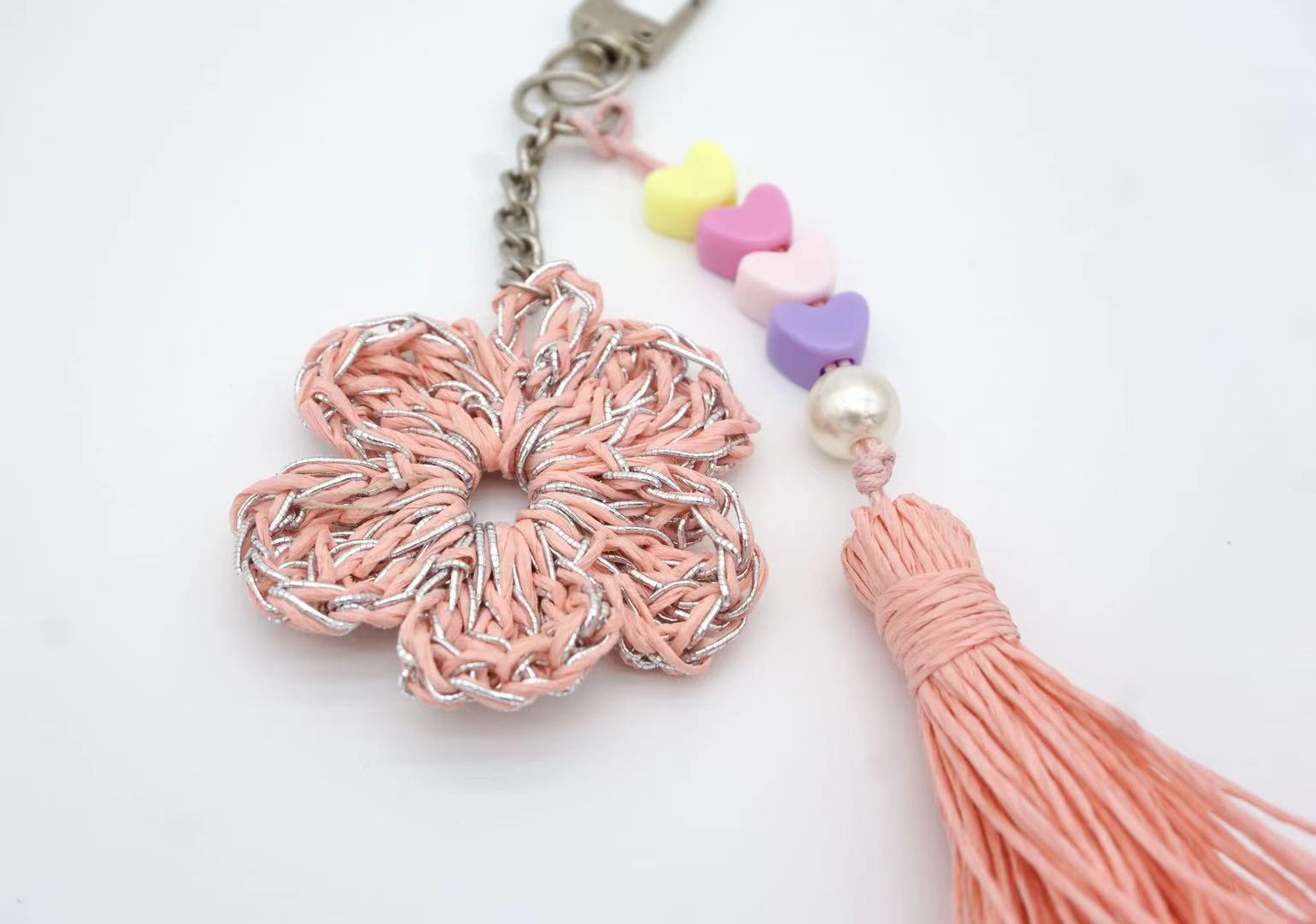 Handcrafted Tassel: Finished with a long, elegant pink paper tassel that adds beautiful movement to your bag or keys.