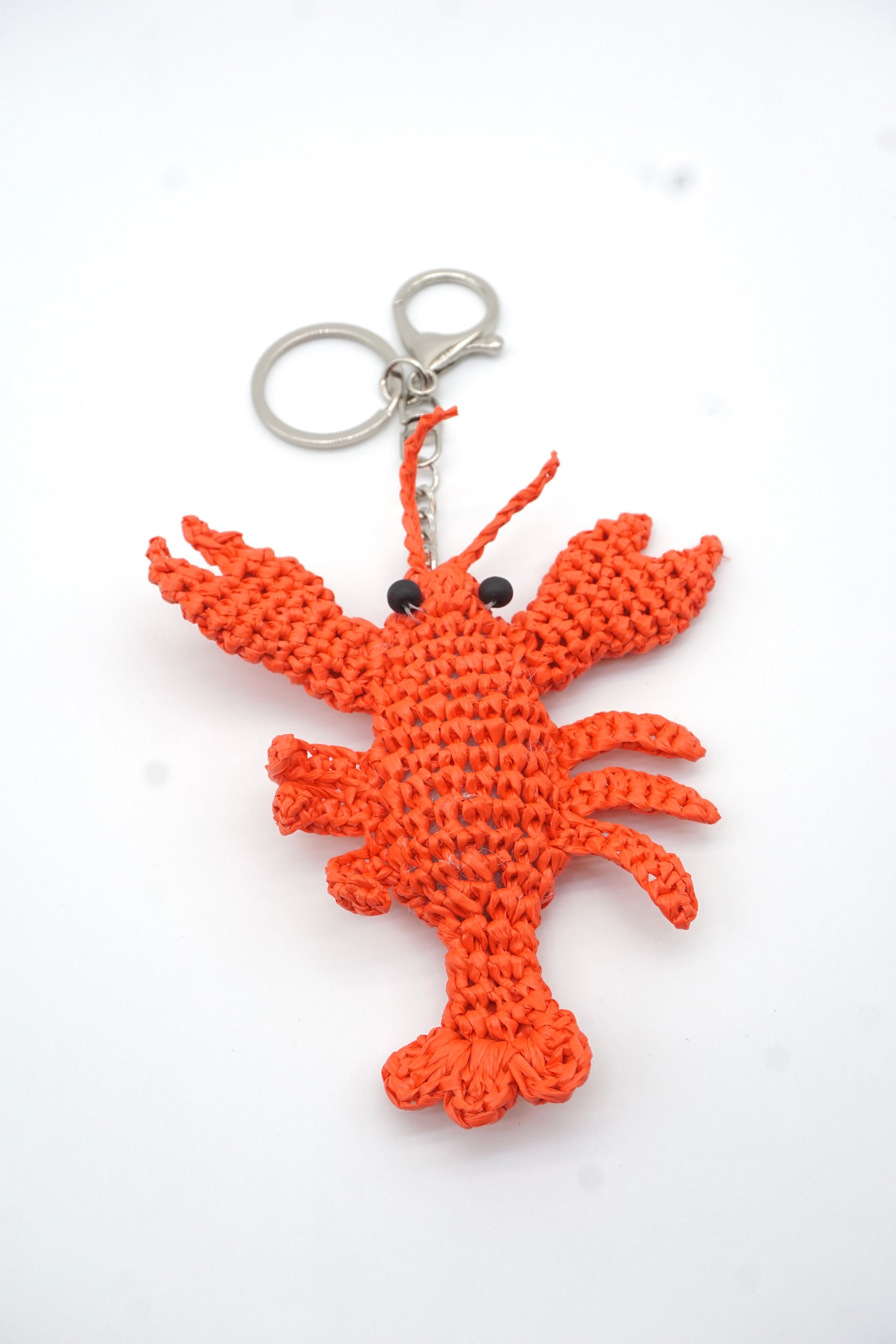 Each lobster is meticulously hand-crocheted by skilled artisans using twisted paper cord—a durable, biodegradable alternative to plastic or synthetic fibers. The paper material gives the charm a unique, crisp texture and excellent shape retention, ensuring the lobster’s vivid details (like its cute black bead eyes and textured claws) stay intact over time. No two pieces are identical, making yours a truly unique sustainable accessory.