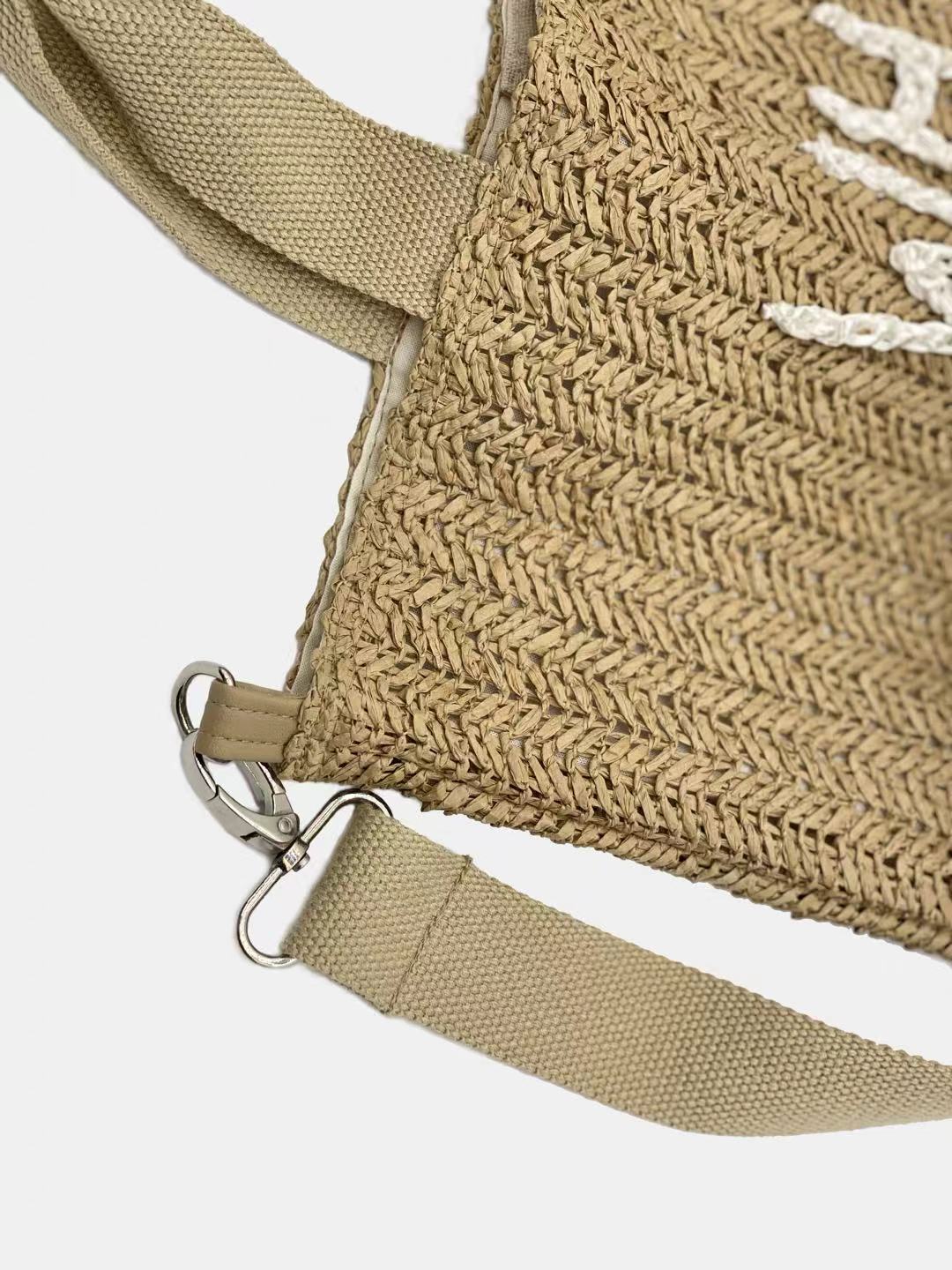 Add a playful, bohemian vibe to your summer wardrobe with our "Why Not" Embroidered Paper Tote Bag Set. Expertly woven from lightweight, eco-friendly paper fibers, this two-piece set features a large tote bag and a mini crossbody bag, both finished with the bold, hand-embroidered "WHY NOT" slogan in bright white thread.The spacious tote includes a soft canvas shoulder strap and a charming tassel charm, perfect for carrying all your beach or market essentials. The mini crossbody bag comes with an adjustable strap, ideal for keeping your phone, wallet, and small items close at hand. Durable, breathable, and sustainably made, this set blends laid-back style with a fun, carefree attitude—making it your new go-to for vacations, festivals, or casual days out.